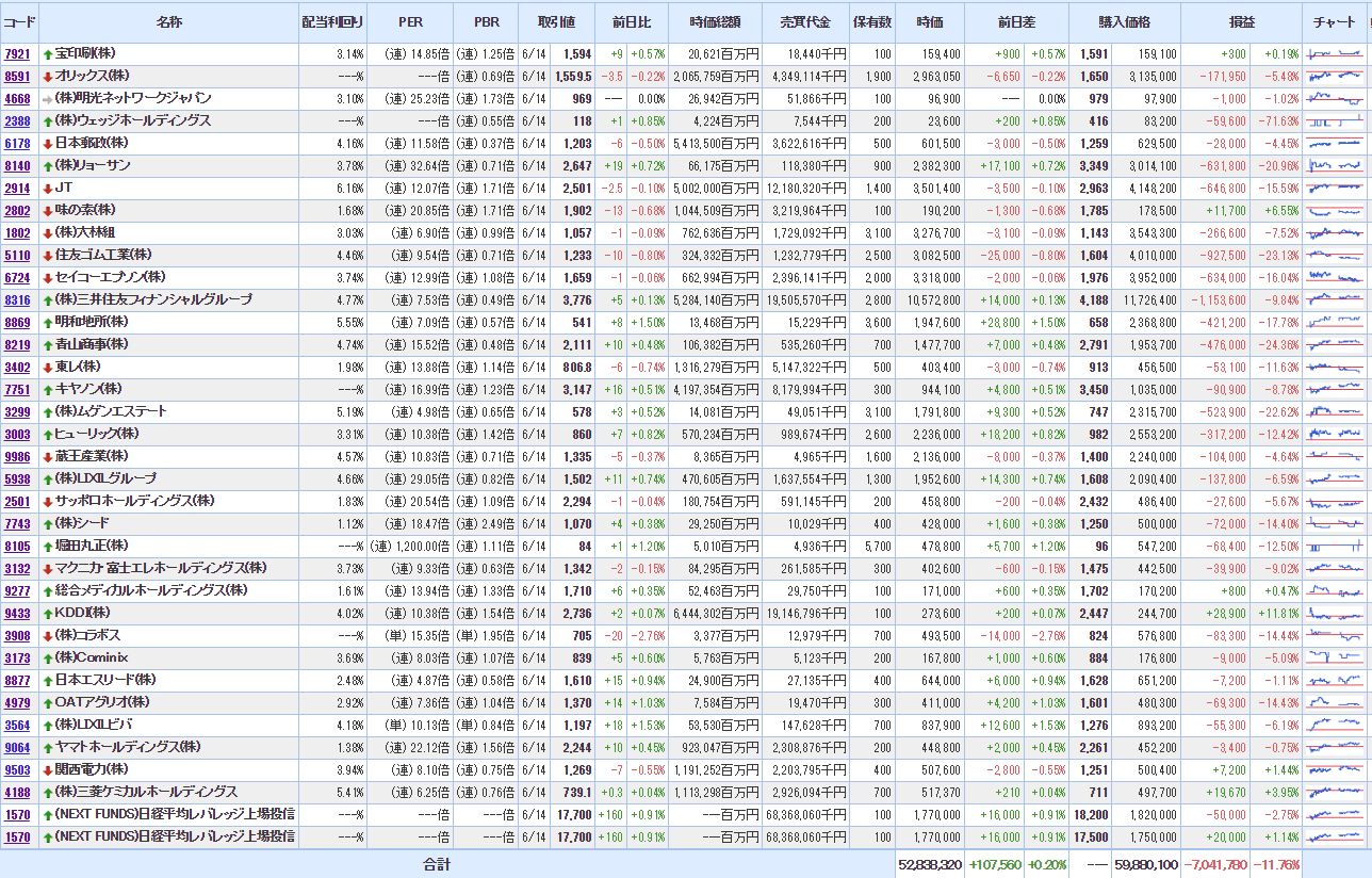 06/03-06/07:△8,313,890→△7,270,160 +1,043,730(実現益+298,981)○(内、配当 126,100 )