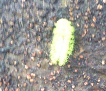 イラガだと思いますが、写真を撮っただけでかゆくなりました。丁度蛹になるとこです。