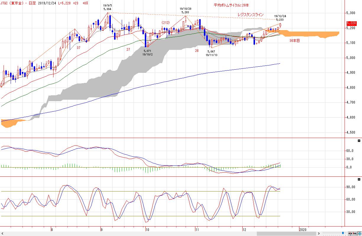 ボトムサイクルは本日で30本目を形成しており、平均ボトムサイクルに到達している。