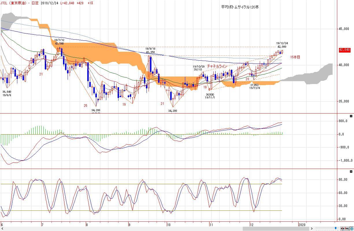 東京原油は前日比420円高の42040円近辺で推移している。