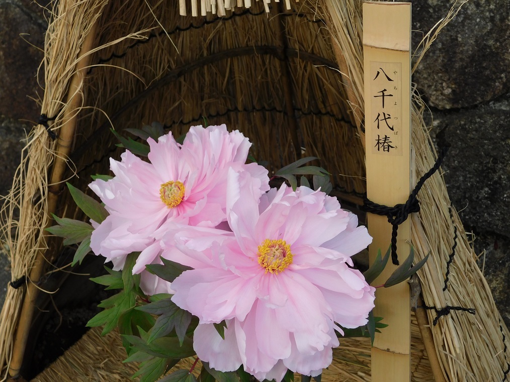 八千代椿と言う花は、牡丹というより芍薬に似ていますね。
