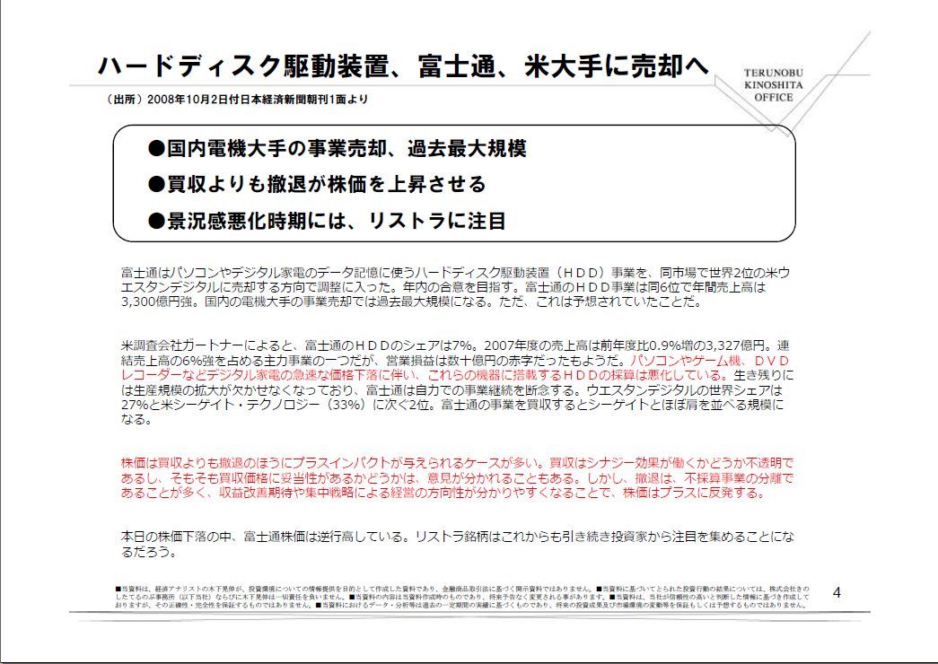 ●買収よりも撤退が株価を上昇させる