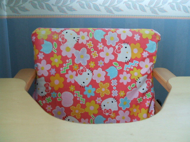 それなので、できるだけ大事に、汚さず使おうとカバーをつけました。私が縫うんですから、もちろん?柄はキティちゃんです