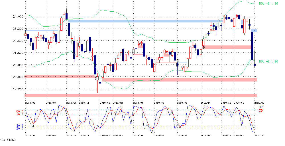 下となると225社の純資産額からPBR1倍水準19500円となります。今週はそれを織り込んで、20033円あたりで止まれる可能性を想定したいと思います。