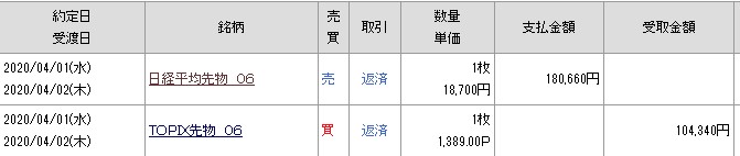 夜間の225、Topixも注文完了です。