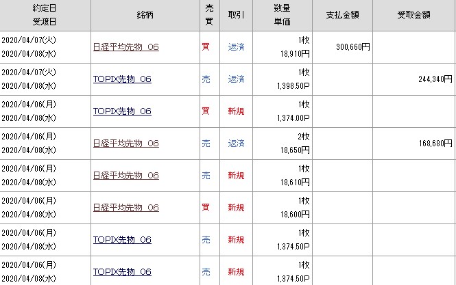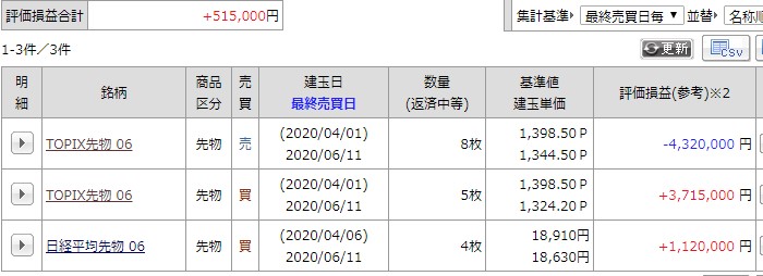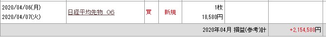 建玉が入れ替わってますので、現在の4月の損益は