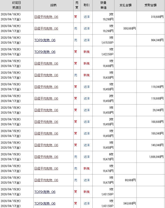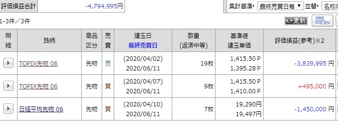現在の建玉は