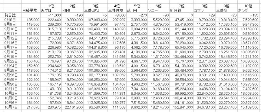 最近、あちこちでセリングクライマックス的な売買高が見られる、というコラムなどが見受けられます。