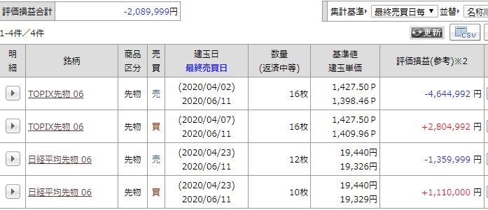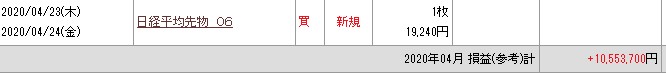 4月の実現損益は寄付きで昨日のデイトレを処分したので