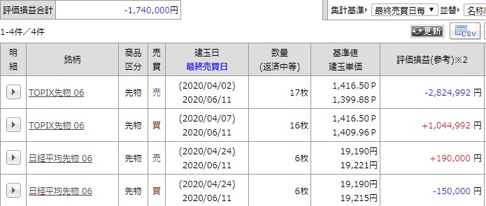 現在の建玉は
