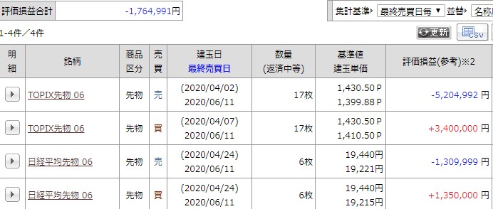 NTショート 225ショート Topixロングという状態。