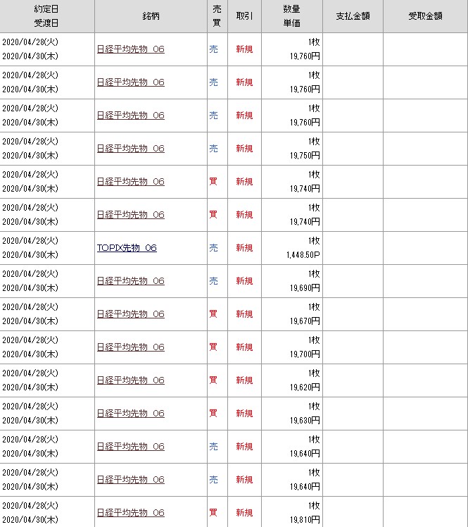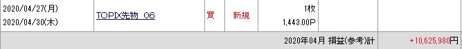 引け時点での4月の実現損益