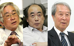 スウェーデンの王立科学アカデミーは7日、小林誠氏、益川敏英氏、南部陽一郎氏の3氏に今年のノーベル物理学賞を授与すると発表した。素粒子物理学の研究での功績が評価された。