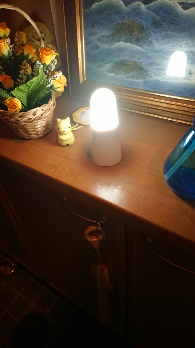 添付した画像のとおり、乾電池式なので置く場所を選ばず、しかもなかなかスタイリッシュな形状をしている。