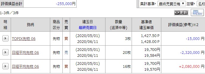 現在の建玉は
