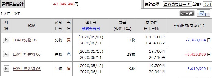 現在の建玉は