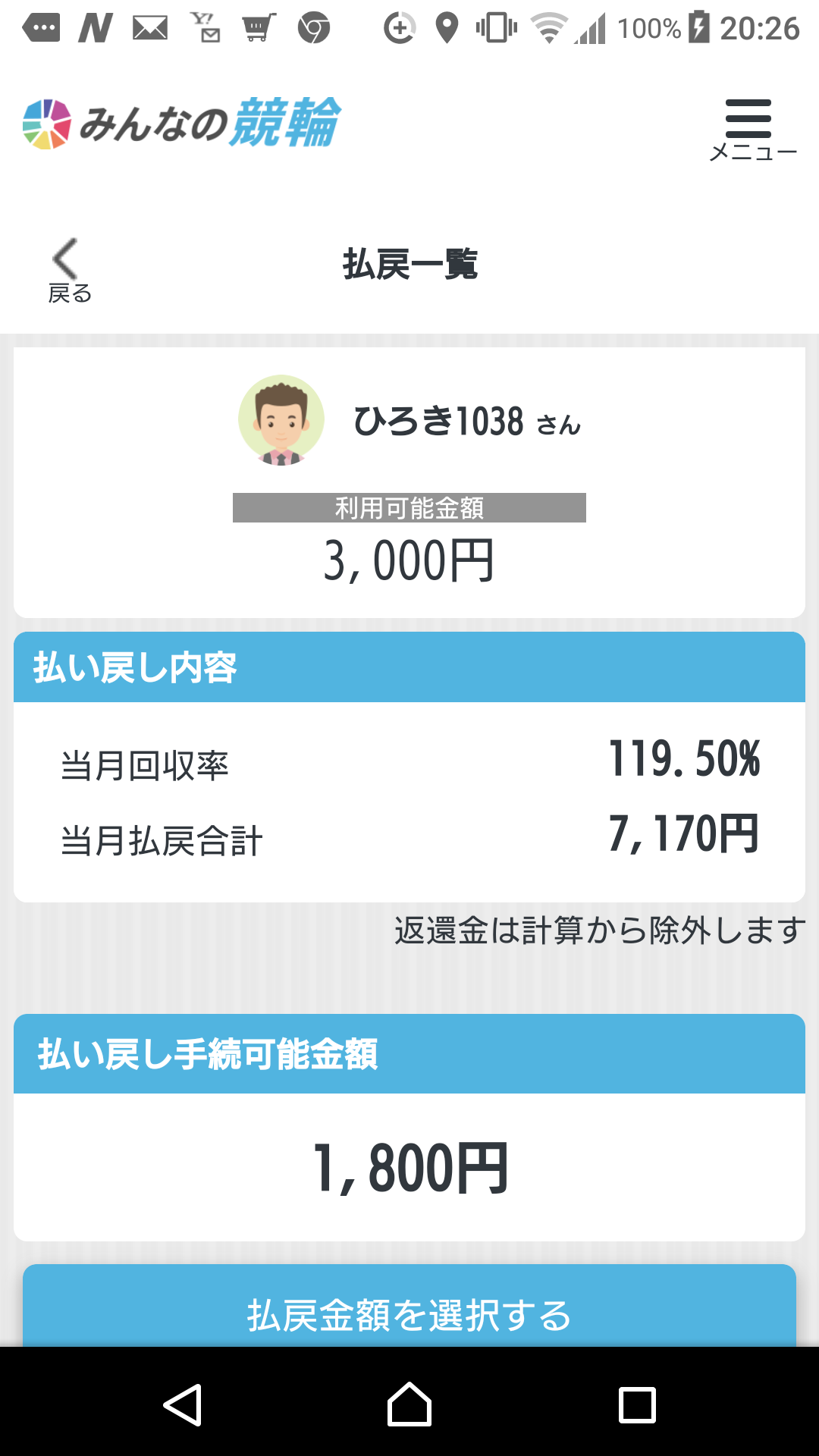 今月は始まってまだ2日ですが、私の競輪回収率は119.5%となってます。