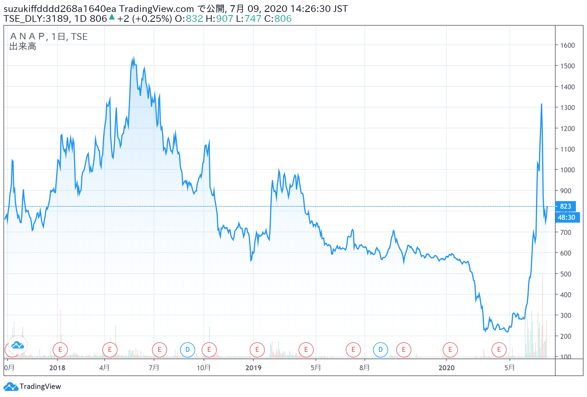 6/30の適時開示情報を深読みした投資家は少ないと思います。よくよく読んでみて動画も見ましたが、なかなか凄いことなのかもしれませんね。 動画は長いのですが 個人的にポイントとなるのは・・・1)子会社のANAPラボが自社AIアルゴリズムを駆使して、再生医療分野で使用する人幹細胞の培養を効率的に行う。 2)ASメディカルと資本業務提携で培養するための施設を木更津に作る 3)結果としてコロナで重症化する原因のARDS(肺炎)の治療に効果が期待できる ということが、私なりの解釈です。(齟齬があればすみません) 人幹細胞については、様々な技術と効果が期待させれているようで世界中で注目されている技術のようです。幹細胞治療については、傷ついた細胞のDNAを修復したり、アレルギー反応をもっている人の場合は、それを正常化させるなど、多くの病気に対応ができるらしい。。ようはコロナで傷ついた肺を治療できる可能性があると思わる。明るい情報だが、実際に運用はいつできるのか?費用は?どこで?どのように治療をうけられるのか?など疑問が多数あるが、実際にサービスインすれば業績は期待できるかもしれない。半面 ワクチンができたり競合のサービスができれば大きく業績向上は望めるかもしれない。可能性があるのはコロナに限らず、複数の症状を改善できる可能性があるようだ。再生医療技術分野なのでコロナだけに焦点をあてるのは早計だが、ANAPのような衣料関連銘柄がAIを使った分野で業績を伸ばせるのであれば興味深い。また、価格に関しても6月は連騰で注目されていたただけに、今後どこまで上値を追い続けるのが気になる銘柄ですね。