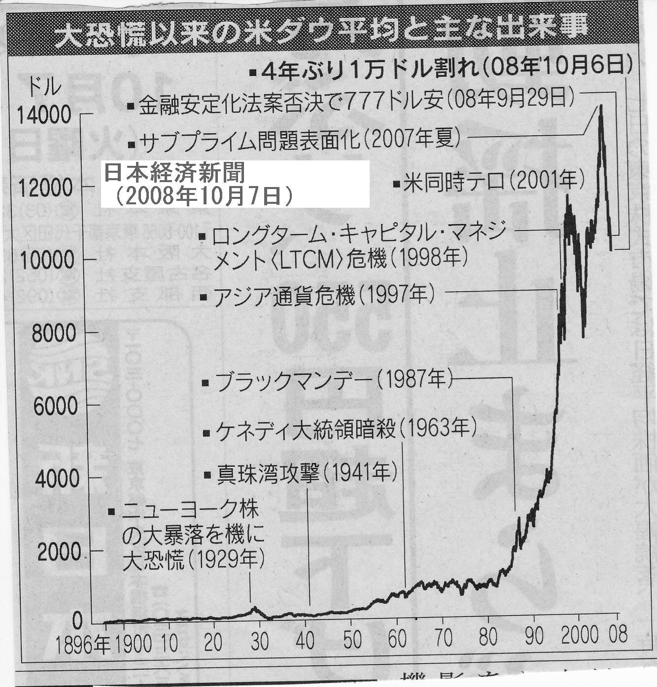 日本経済新聞が7日の夕刊でNYダウの100年間のチャートを掲載した。