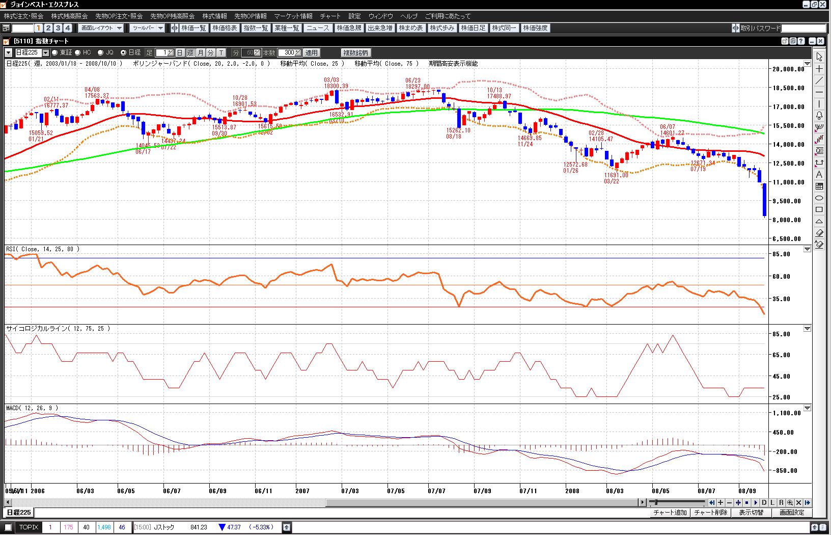 図1:日経平均(日足) 図2:日経平均(10/10)