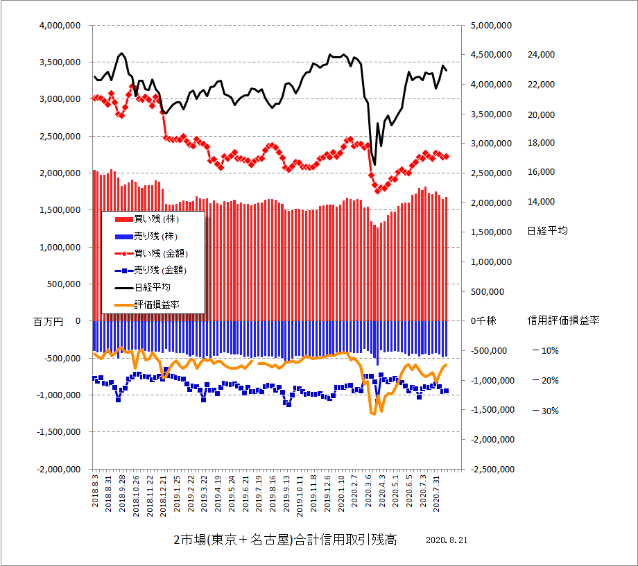 売り残が少し減って、買い残が少し増加ってところ。信用評価損益率は少しよくなっています。