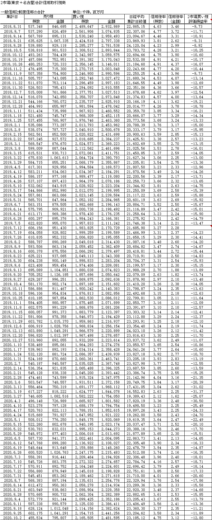 売り残が大幅に減って買い残が少し増加、信用評価損益率は悪化しています。