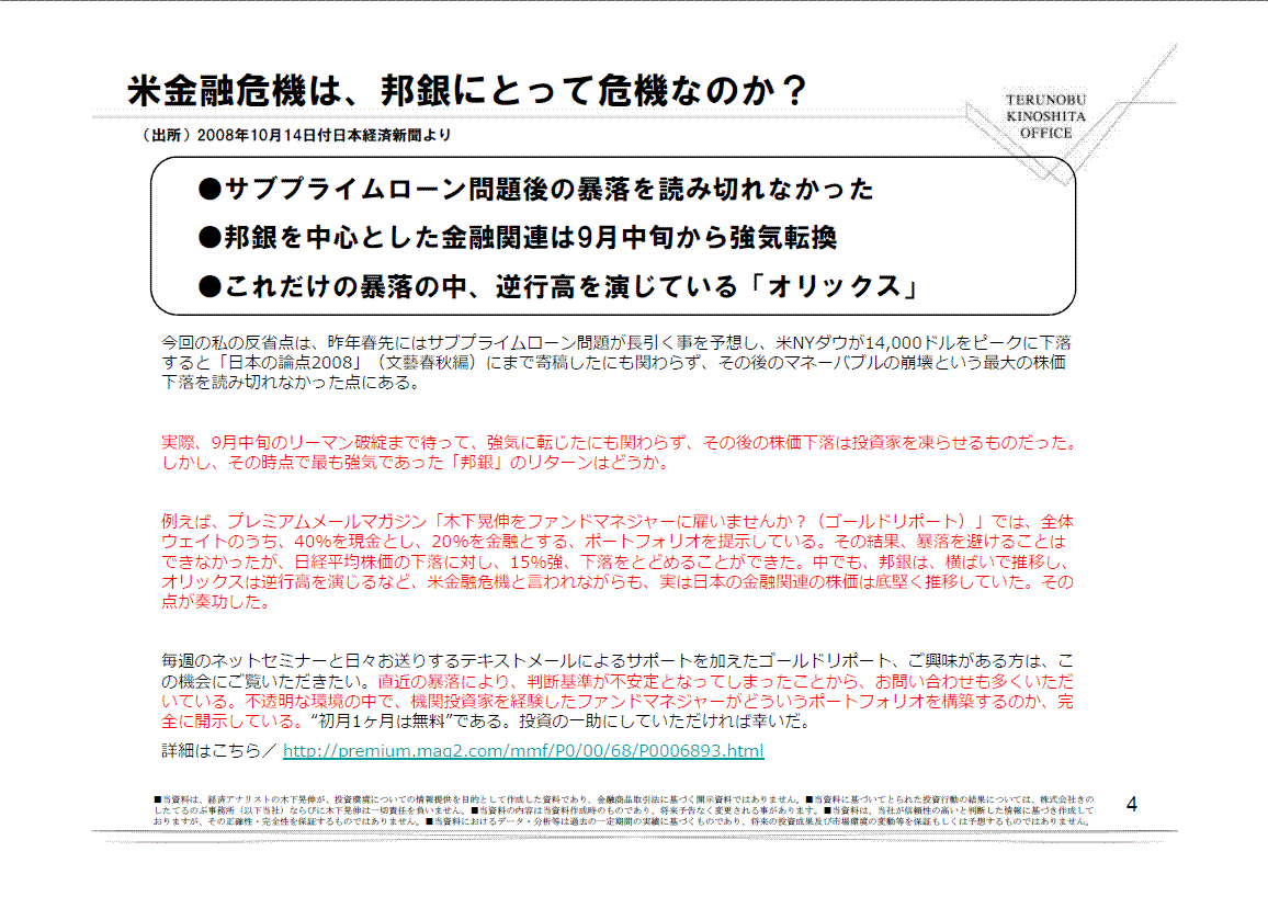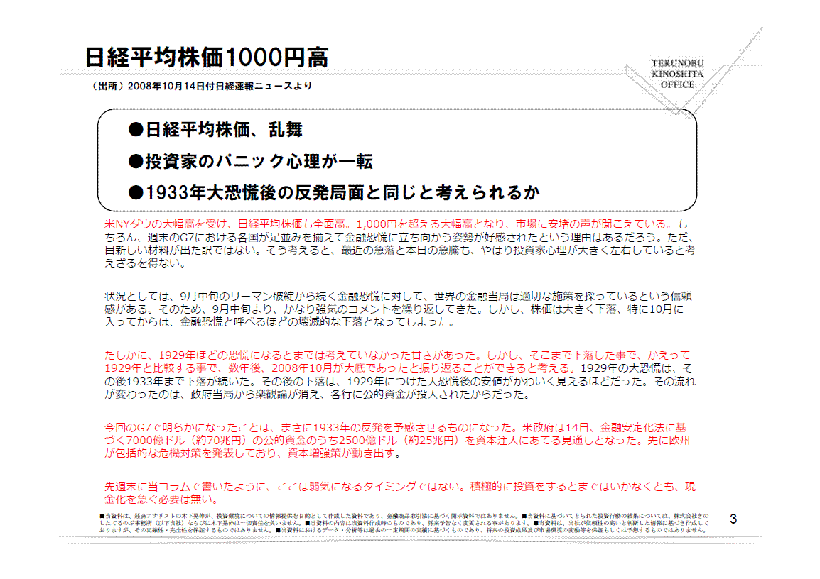 数年後、2008年10月が大底であったと振り返ることができると考える。