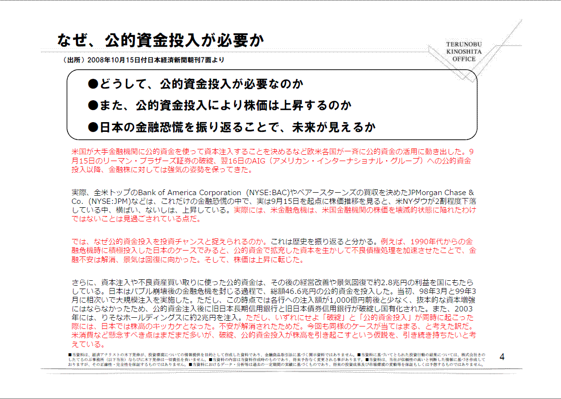 その要因となった、”公的資金投入”は、ここ1ヶ月米金融当局を中心に、