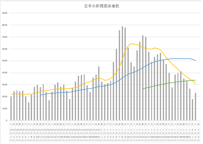 こうしてみると、7日移動平均は日々の動きにそってばたばた
