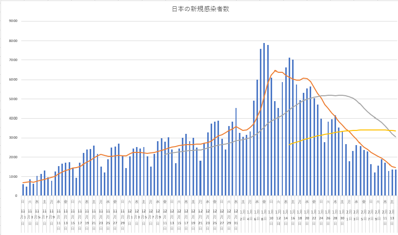 累積の死亡者数は別にして、全体に、前日比減少の数値は