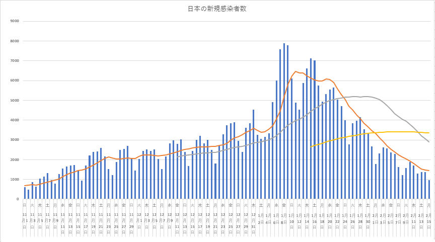 2月15日(月) の日本感染データ