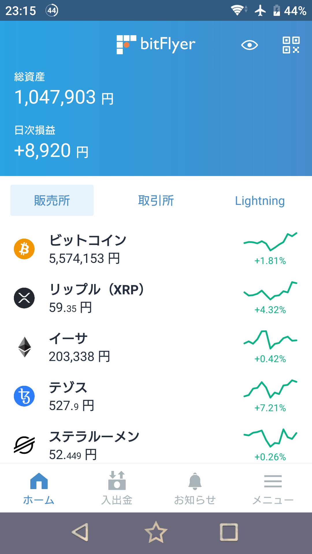 現金1.0M JPY を販売所で購入 0.972M JPY へ