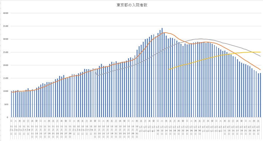 すでに3月1日ですが、今日から感染データはグラフだけにします。一度に載せると分りにくいので、まずは東京都の新規感染を載せ、残りはコメントでひとつずつ載せることにします。