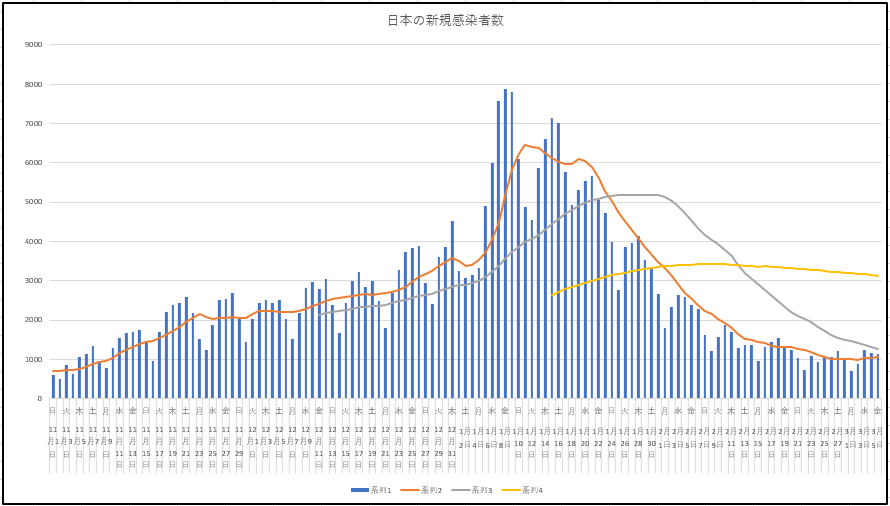 日本の新規感染、