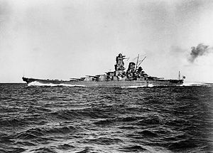 戦艦大和。宿毛湾沖標柱間で公試中、1941年(昭和16年)10月30日撮影。