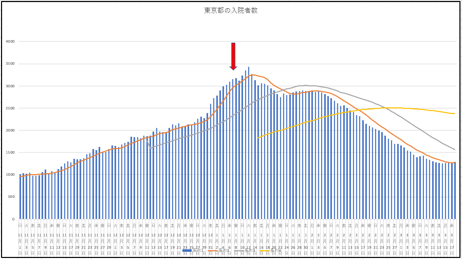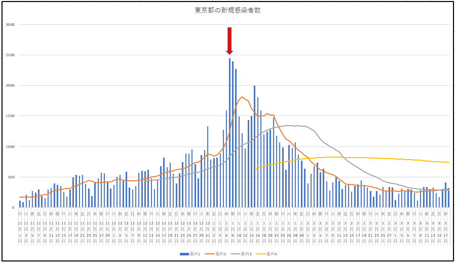 上の赤い矢印は緊急事態宣言の1月7日を指している。