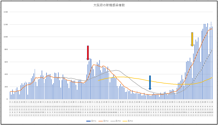 どうしても夜は眠くて・・・・朝になったので、昨日までの東京、大阪、日本の新規の推移を載せておき、これからモーサテを見ます。