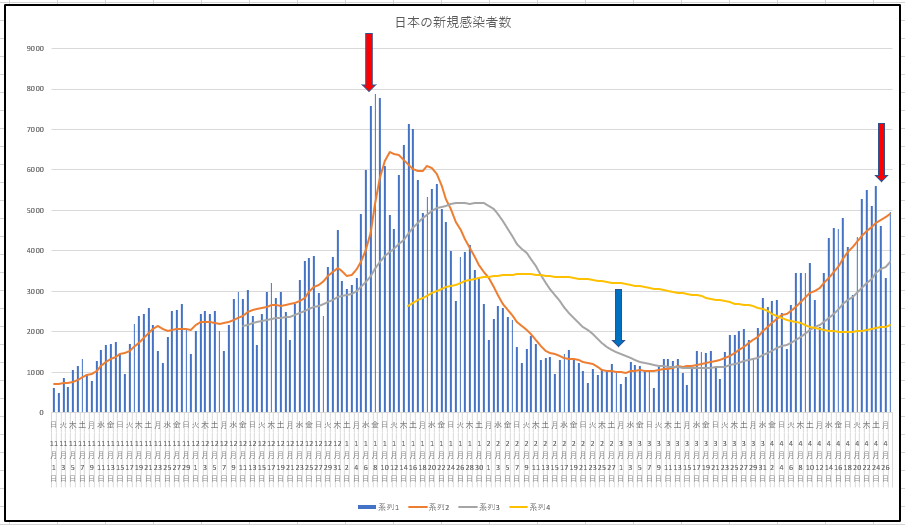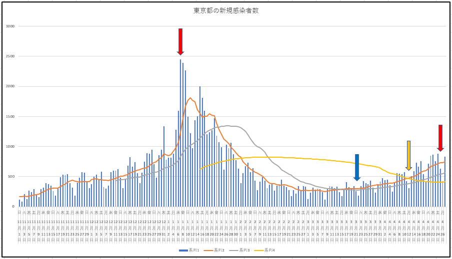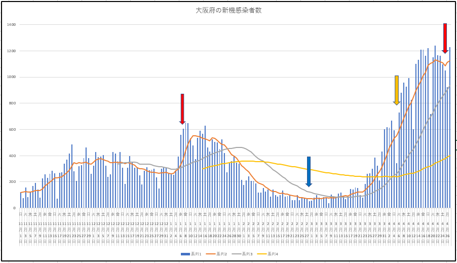 27日までの東京都、大阪府、日本の新規感染者推移。