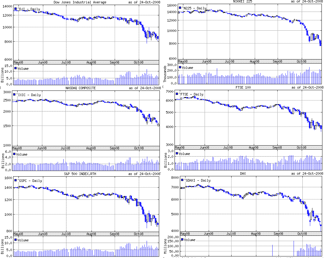 アイスランドの実質破綻に続いて、パキスタンがデフォルト危機になったり、アルゼンチンが年金国有化を目指したり、ウクライナやハンガリーが支援を求めたりと、新興国や経済規模の小さな国で危機的状況に陥る国が続出しています。これらの国の通貨も猛烈に売られています。ハンガリー、デンマークは通貨防衛のために利上げを行いました。通貨が売られれば、外貨建ての債務が膨らむし、国の信用自体が下がっているので借り換え金利も高くなります。スパイラル的に国家財政が厳しくなります。