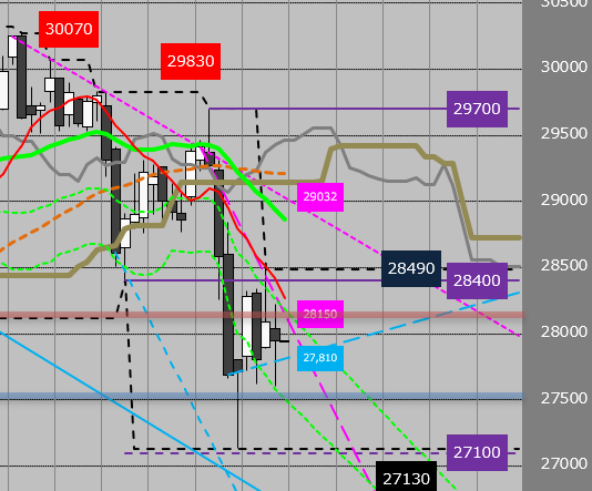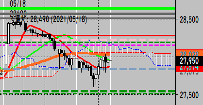 レンジ上限は売り狙い、下限は買い狙いですが、28000付近でもみ合っているならスルーです。