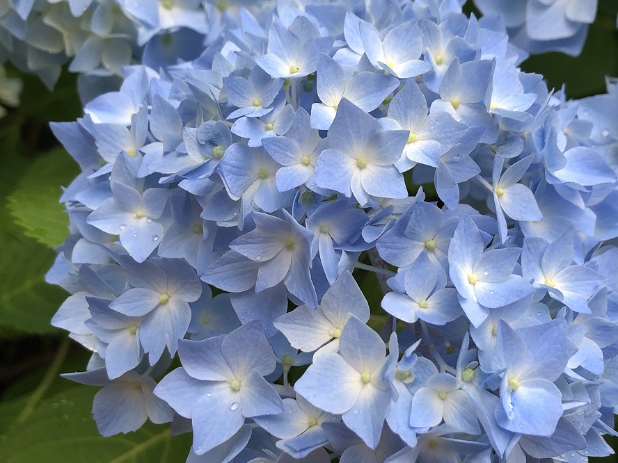 1枚目の大きく写してる 水色のアジサイが とても奇麗ですね~。