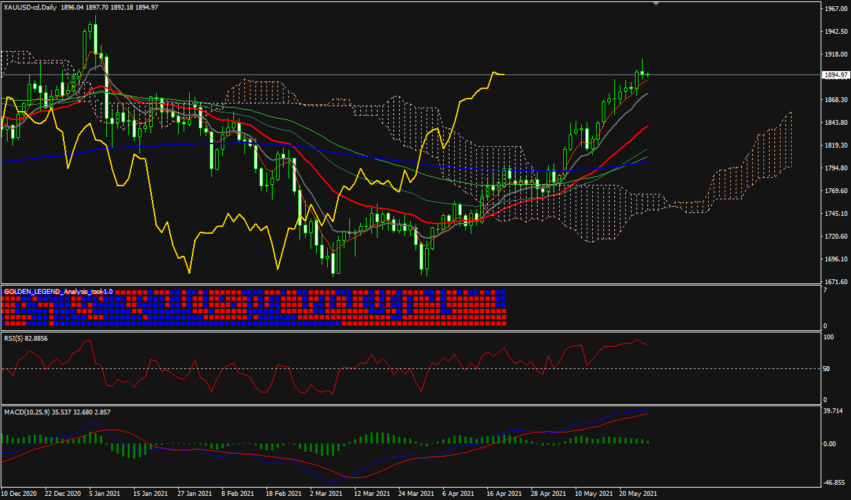 金ドルは1895.25ドル近辺で推移しています。昨日は一時1912.68ドルまで上昇したものの、長い上ヒゲを形成しました。