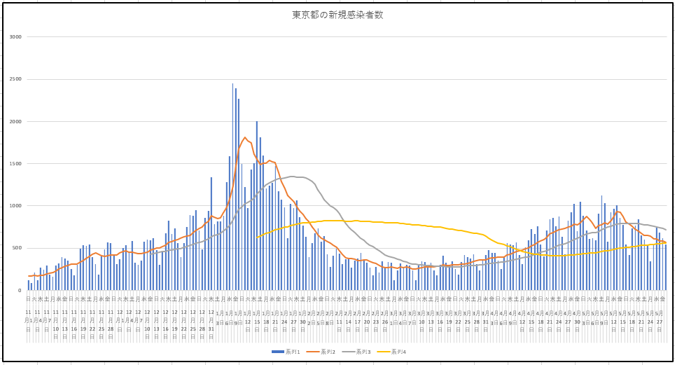 東京都はさほど爆発してなかったのでゆるやかに減少か。
