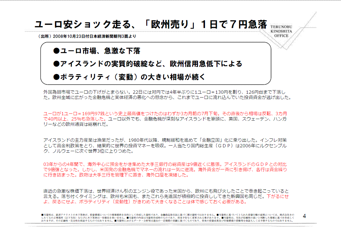 ●アイスランドの実質的破綻など、欧州信用急低下による