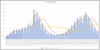 日本全国の新規と患者数の推移。こちらも同様な傾向に。