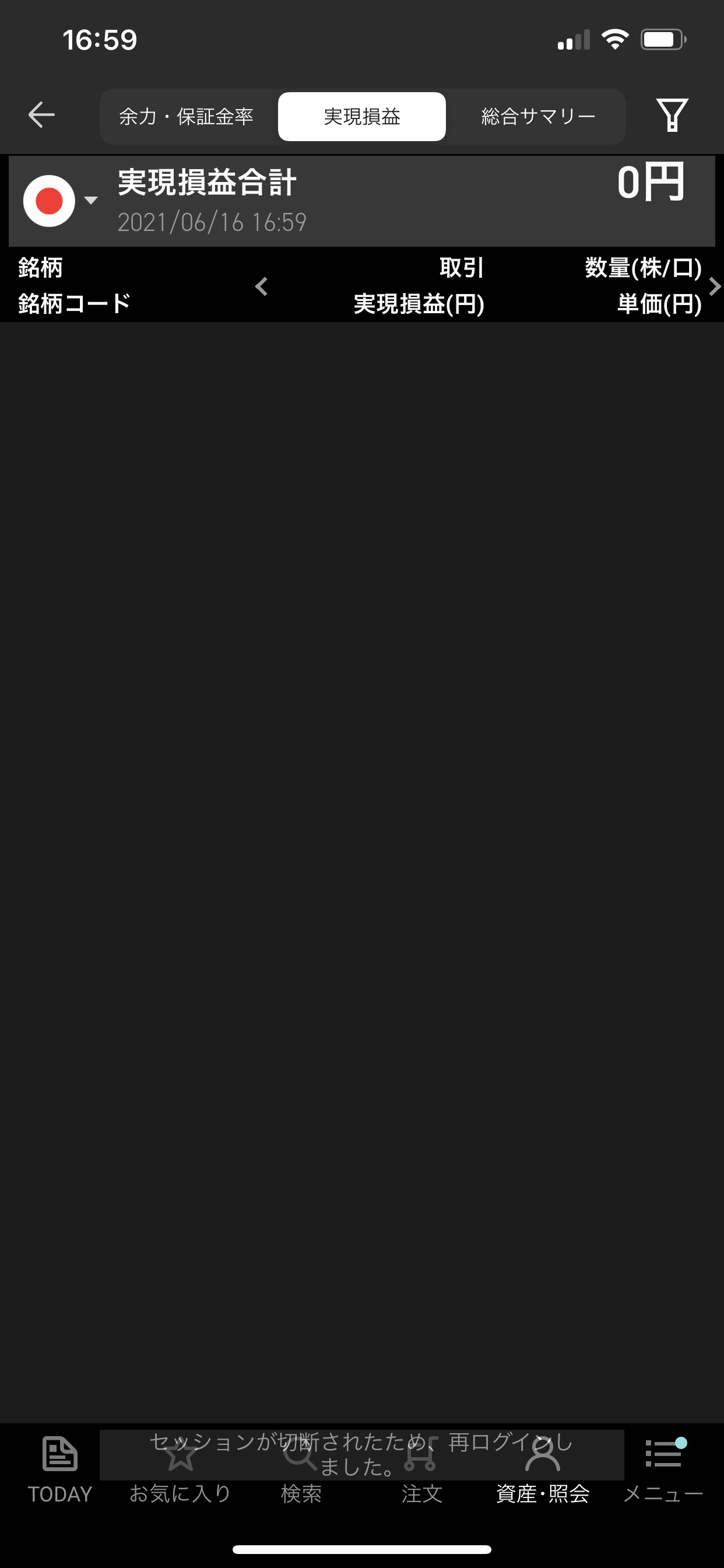 空売り、6/16の実現損益は+0円
