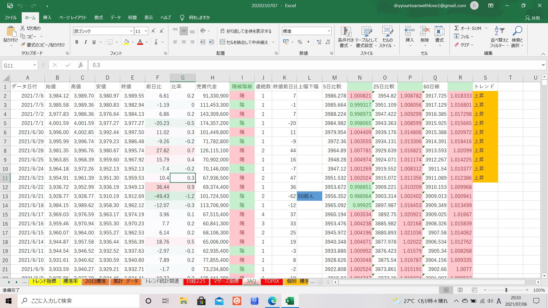 本日の結果はこちらです。