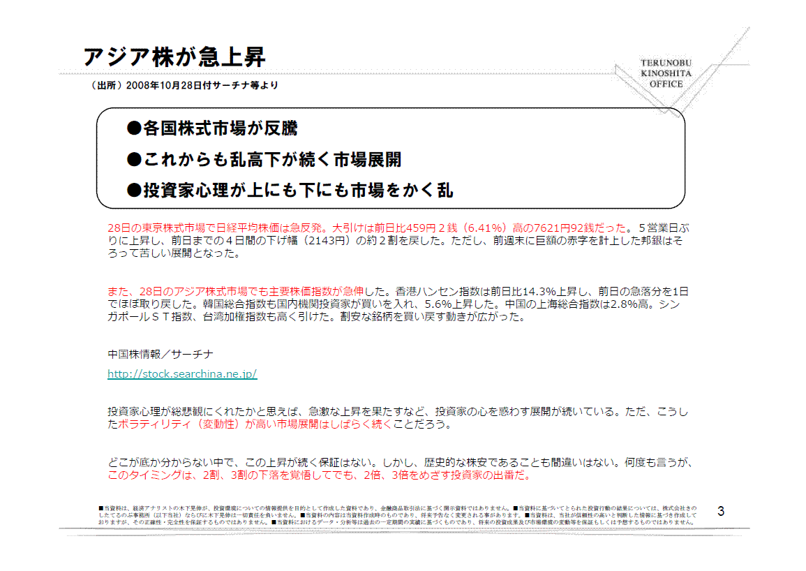 ■日本をはじめ、アジア各国の株式市場は軒並み反騰しています。