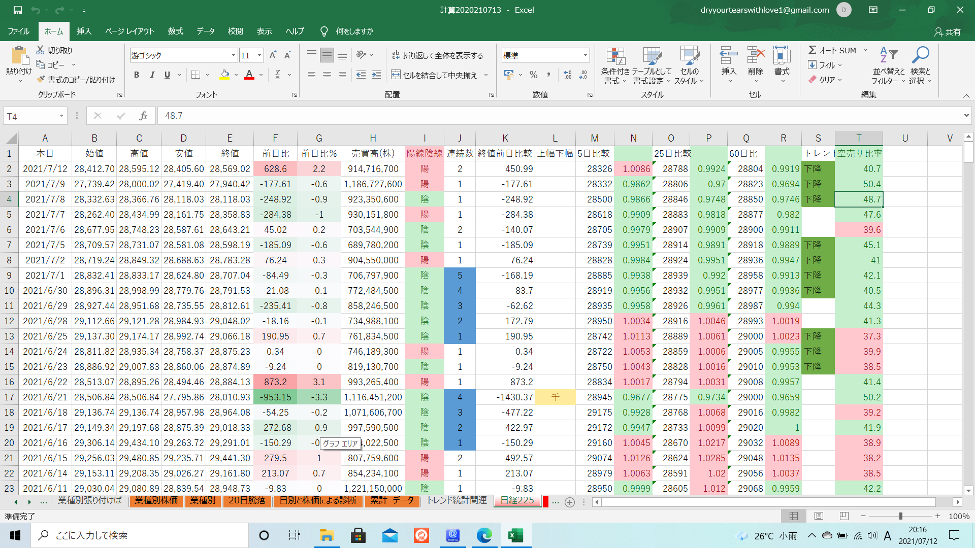 それが今日です。こんな日の翌日は下がる可能性が高いです。