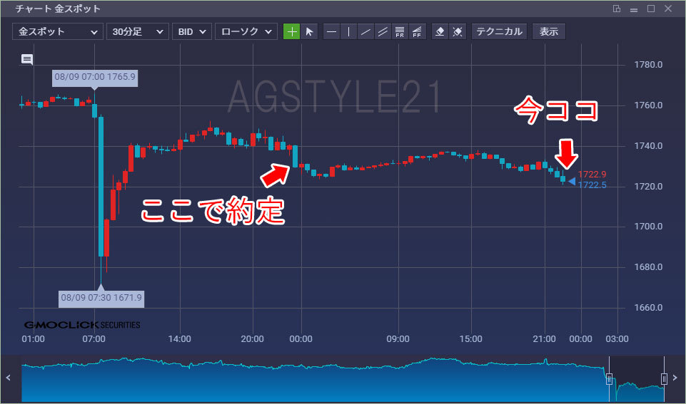 昨日再度空売りをした原油金スポットの続きです。